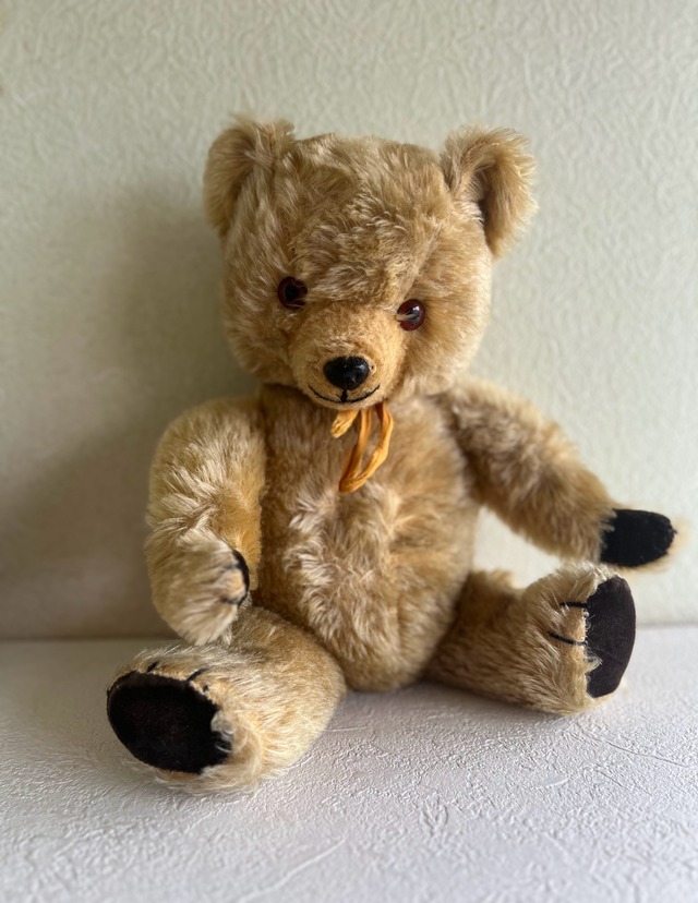 ふわふわチャドちゃん! 年代1950年代 身長30センチ グラスアイの子になります。 ✴︎足裏に少しタグが残っています ※目の周りにモヘアロスがあります お鼻と逆Y字の形のお口は黒い糸による手刺繍です♡ 「悲しい時には側にいて一緒に悲しみ、嬉しい時は一緒に喜んでくれる」ような 誰もが自分の感情を映し出しやすいような 穏やかな表情に仕上がっている魅力たっぷりなチャドちゃんです♡ フル・ジョイント。 海を越え、山を越え、国を超え、それぞれの時代を乗り越えてたどり着てきてくれた チャドちゃん☆はるばるのご縁で辿りついてくれたビンテージチャドちゃんです☆ このチャドちゃんが見てきた長い長い年月がまさに!ここでしか出会えない 「オンリー・ワン」な魅力を出してくれています♡ そこには魂が宿っていることを実感させてくれる存在ですね(*^-^*) そしてこれからも人の手から手へ受け継がれていくべき 貴重なチャドちゃんだと自信をもって言えます!! 1体1体ベアにはストーリーがあり、 人にもベアとのけかえのない思いやストーリーがあります。アンティークテディベアを、 これから共に歩む存在としてあなたや大切な方のそばにぜひ置き過ごしてみませんか? 飾っておくだけで部屋を一気に優しさ溢れる暖かい空間に変えてくれます♡ ベアちゃんとの出会いは一期一会のご縁だなーといつも思います♪ そしてベアちゃんたちが繋げてくれたご縁を大切に✨ 世界で一体!あなただけのベアちゃんとの出会い。 アンティークテディベアがあなたのかけがえのない親友になりますように✨